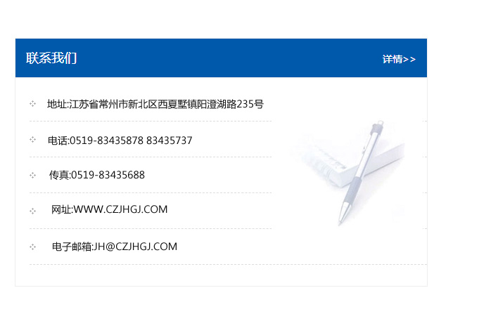 地址:常州市新北區友邦商務大廈1幢16、17層  電話:0519-85101652  傳真:0519-85112595  郵編:213022  網址:www.cz-jiayue_cn.koyojo.com  郵箱:xiajifengaa@163.com